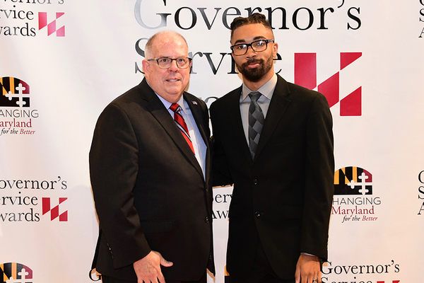 Maryland Gov. Larry Hogan honored a volunteer from a Frostburg State University-affiliated AmeriCorps program, FSU senior Mekhi Jones, during the 36th Annual Governor's Service Awards Ceremony, which was hosted by the Governor's Office on Service and Volunteerism in October.